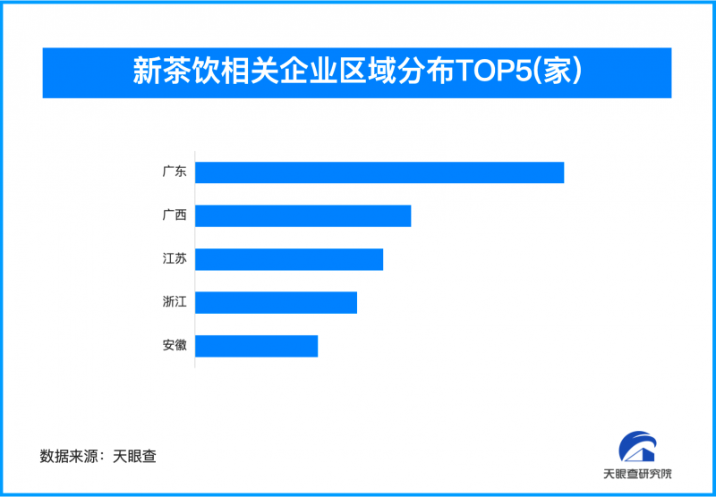从地域分布看,广东以超11万家新茶饮相关企业位居榜首,广西位居第二,拥有6.7万余家相关企业,江苏、浙江、安徽紧随其后,企业数量均超过3.8万家。