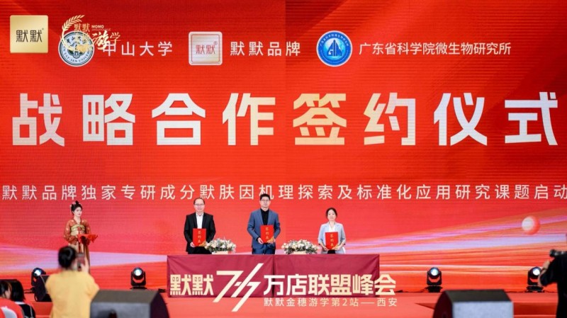 本次会议特别邀请中山大学化学学院副教授李厚金博士,广东省科学院、广东微生物研究所食用菌研究发展中心主任谢意珍女士与默默签署合作战略协议。中山大学将携国际顶尖的科研团队与高端设备(包括布鲁克核磁共振波谱仪、x 射线单晶衍射仪等 “硬核武器”),为默默品牌注入科研研发力量。双方将聚焦 “专利默肤因第二代审计研发” 成分的深层机理研究,破解其修护、抗皱等功效密码,让每一瓶产品都承载科学验证。