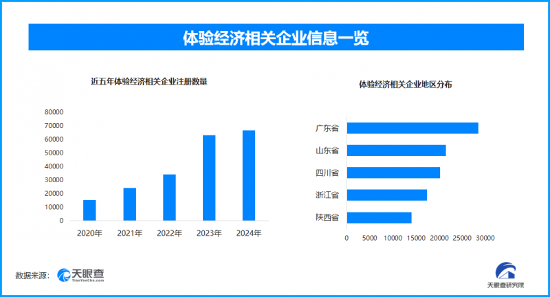 从区域分布来看,广东省、山东省、四川省体验经济相关企业数量位居前列,分别为超2.8万余家2.1万余家和2万余家。