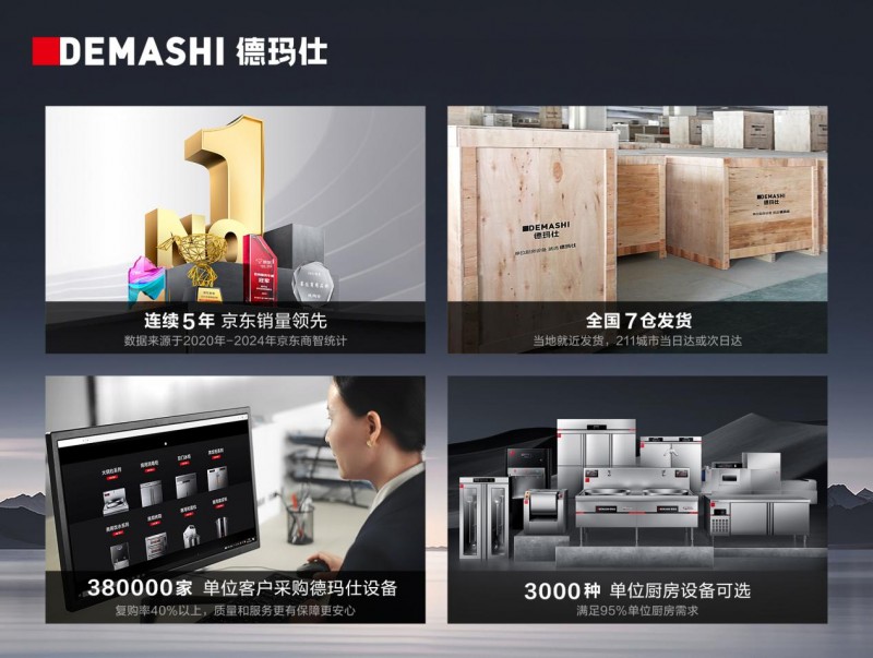 能成为京东品酒会的“宴席搭档”,德玛仕靠的是实打实的口碑与积累。自2016年成立以来,德玛仕始终专注于商用厨房设备的研发与制造。至今已推出超3000种配套设备,服务超过380000家企事业单位,累计完成10000 厨房工程项目,并连续五年在京东商用电器销量领先,是真正“用数据说话”的行业标杆。