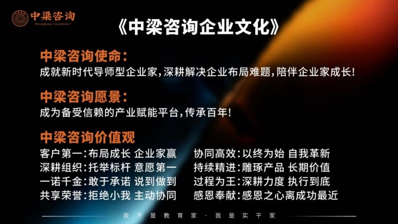 【成就新时代导师型企业家,深耕解决企业布局难题,陪伴企业家成长】——这不仅是中梁咨询刻在pg电子官方的文化里的使命,更是19载扎根实战的行动指南。不同于传统咨询公司“纸上谈兵”的模式,中梁咨询的团队深谙企业发展的“痛点图谱”:在企业发展之路上,从战略规划的共识凝聚,到团队效能的协同提升;从市场拓展的破局打开,到客户服务的体验优化,每一个关键节点都是企业迈向新高度的成长阶梯。