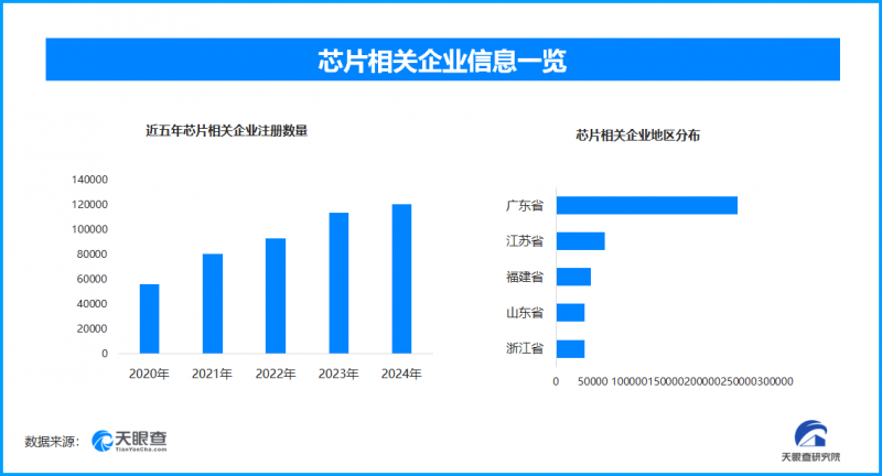 天眼查专业版数据显示,截至目前我国现存在业、存续状态的芯片相关企业超78万家。其中,2025年截至目前新增注册相关企业约12万余家,从企业注册数量趋势来看,近五年间,芯片相关企业的注册数量呈现出逐年增长的态势,并在2024年达到顶峰。
