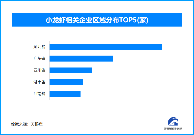 天眼查专业版数据显示,截至目前我国现存在业、存续状态的小龙虾相关企业超1.6万家。从区域分布来看,湖北省、广东省、四川省、湖南省小龙虾相关企业数量位居前列,四个省市数量总和超过7700家,占企业总数的47.4%。