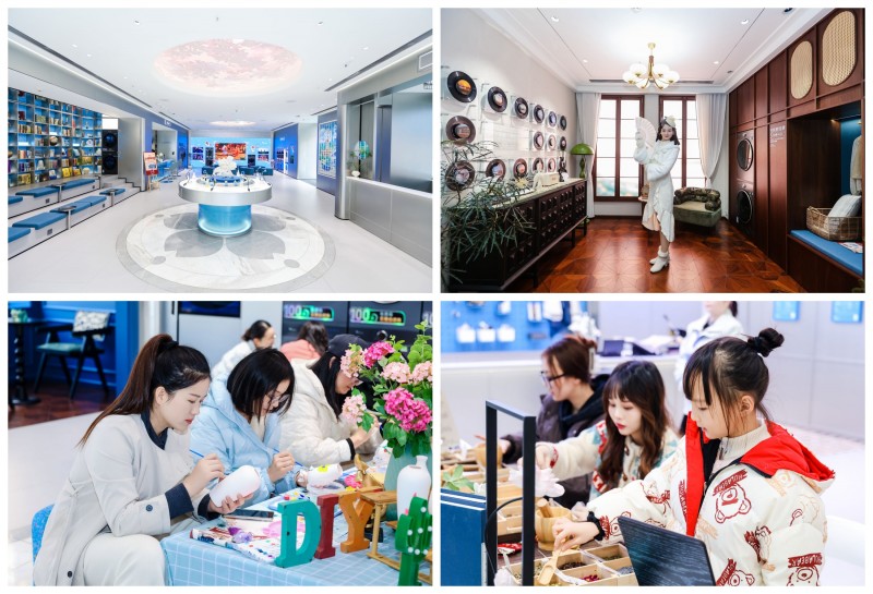 店外欢声笑语,店内同样沉浸感十足,身穿民国服饰的“一日店长”在门店进行巡游互动,吸引顾客争相合影;民国换装区也人声鼎沸,顾客们兴致勃勃地挑选着精美华服,换上长衫、旗袍后的市民,秒变民国青年才俊与优雅女士,在小天鹅精心布置的场景前打卡留念;门店还别出心裁地设置了香氛区、古诗词楼梯、cd墙以及衣物洗护区、图书角、咖啡吧、switch游戏区和抓娃娃机等区域,完美诠释了新时代品质、健康生活理念。